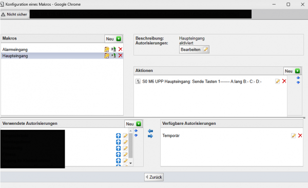 Neue Autorisierungen funktionieren nicht - Denkra - 14.02.2025 Einen wunderschönen. Ich habe ein kleines Problem, und zwar funktionieren neu erstellte Autorisierungen nicht. Ich habe seit ein paar Jahren zum Beispiel das Makro, dass Dienstags zwischen 10:00 Uhr und 22:00 Uhr die Türen freigegeben werden, damit man mit seinem Transponder rein in das Gebäude kommt. Funktioniert auch super. Jetzt wollte ich genau die Gleiche Autorisierung nochmal erstellen nur mit einem anderen Tag und einer anderen Uhrzeit bzw. ich habe es letzte Woche erstellt und heute ausprobiert. Es hat nicht funktioniert. Wenn ich aber die Autorisierung von Dienstags auf Freitags änder, funktioniert es. Nur neu erstellt nicht. Momentan existieren 3 Autorisierungen seit Jahren was die Zugänge regelt und ich hatte daa noch nie ein Problem. Nur jetzt halt warum auch immer. RE: Neue Autorisierungen funktionieren nicht - LuckyLPA - 14.02.2025 Moin Wie ich schon bei FB schrieb... Makros kann man nur über ein Kommando auslösen. Dies muss aus dem Bus oder der GVS kommen. Man kann kein Makro einfach per Transponder auslösen, außer es ist auf einer Taste programmiert, welche der Transponder bedient. RE: Neue Autorisierungen funktionieren nicht - Denkra - 15.02.2025 Hier geht es vielleicht auch ein bisschen leichter zu schreiben. Ich habe da ein bisschen was durcheinander gebracht mit Macros und Autorisierungen und so. Gehen wir mal von den Macros komplett weg. Die funktionieren alle und sind auch eingerichtet. Es geht ausschließlich um die Autorisierung bei der Zugangskontrolle. Alte funktionieren wie sie sollen, neue funktionieren gar nicht, alte die geändert werden funktionieren auch. Was mich gerade eben gewundert hat... Die Autorisierungen gibt es einmal in dem Menüpunkt "Zugangskontrolle" und einmal in dem Punkt "Makros" Ich kann aber beide getrennt voneinander ändern. Ich bin jetzt noch mehr verwirrt. Kann es vielleicht sein, dass ich einfach das falsche geändert habe und es deswegen nicht funktioniert hat? Hier zum Beispiel die Autorisierung unter dem Menüpunkt "Makros" Wie man sieht, ist das "Temporär" unter den verfügbaren und nicht bei den verwendeten Autorisierungen. Hier dann die Türen unter dem Menüpunkt Zugangskontrolle Das sind dann die Autorisierungen bei der Zugangskontrolle. Da ist das "Temporär" dann unter den verwendeten Autorisierungen. RE: Neue Autorisierungen funktionieren nicht - LuckyLPA - 15.02.2025 Moin Ich hab mal n kurzes Video dazu gemacht... kommt nachher auf meinem Kanal. RE: Neue Autorisierungen funktionieren nicht - Denkra - 16.02.2025 Ah super vielen Dank. Gucke ich mir direkt mal an (15.02.2025, 21:43)LuckyLPA schrieb: Moin Habe mir das Video gerade angeguckt und jetzt wird mir da auch so einiges klar. Wenn du es in dem Video nicht so erklärt hättest, wäre ich da glaube ich nie drauf gekommen. Habe das jetzt mal alles genau so umgestellt und es funktioniert genau so wie es sein soll. Vielen Dank für die Mühe die du dir da gemacht hast um es zu erklären. |