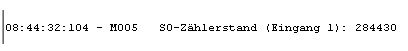 08:30:32:487 - M005 S0-Zählerstand (Eingang 1): 284402