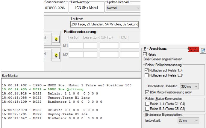 (2) Warum wird die Motorposition in der LCN-Pro 6.01 im Statusfenster zwar bei Modulen mit neuer Firmware, aber z.B. nicht bei Modulen mit SN 0A0C15, 0C090B, 0F0B0B angezeigt?