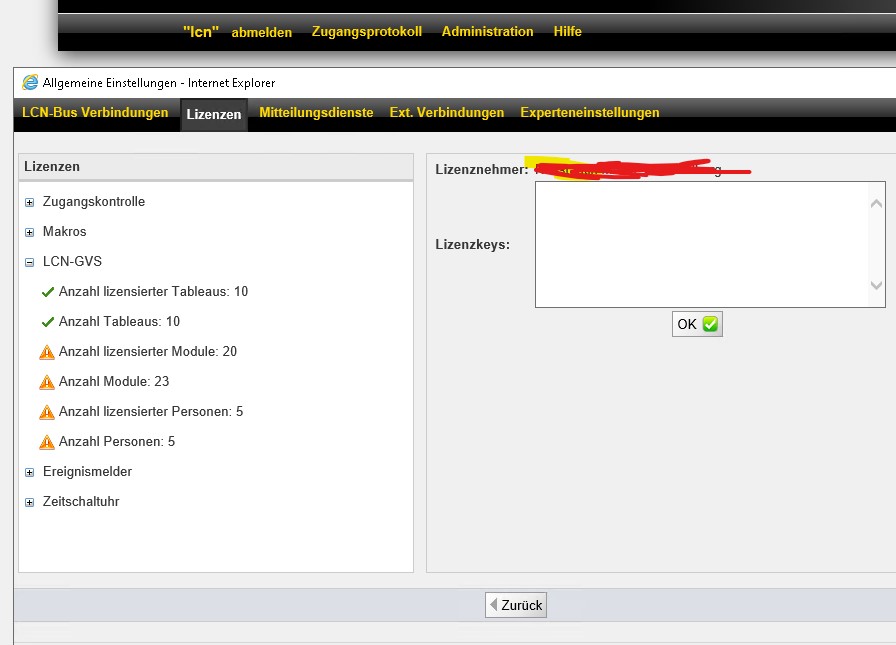 Kann mir jemand helfen? Hatte einen Stromausfall. Mein LCN Server ist also unschön herunter gefahren worden. Danach waren alle Kästchen rot <== habe ich behoben, Lizenz musste noch rein.