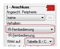 Damit die Fernbedienung auf die B-Tabelle wirkt, koennen Sie den I-Anschluss (Anschluesse) so einstellen: