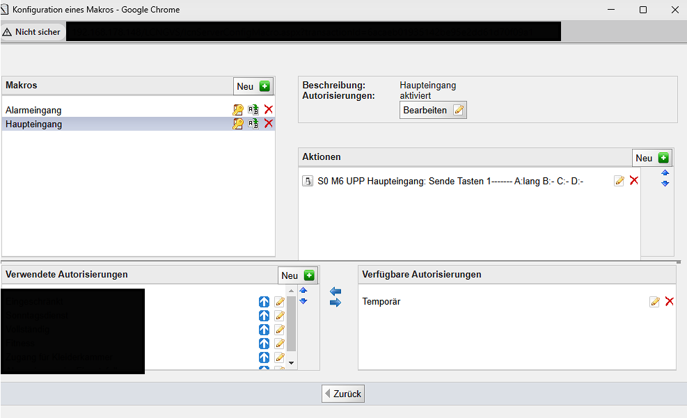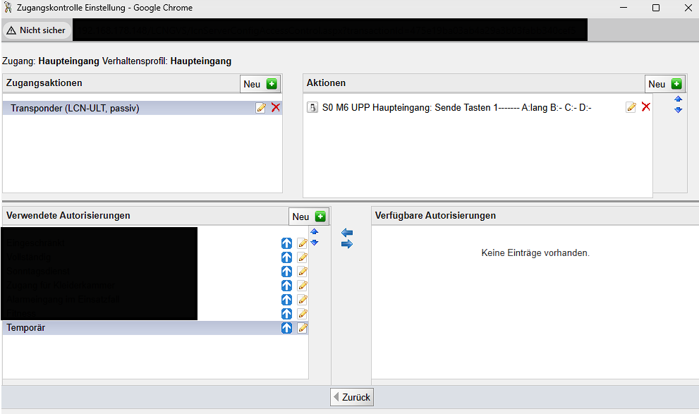 Ich habe ein kleines Problem, und zwar funktionieren neu erstellte Autorisierungen nicht. Ich habe seit ein paar Jahren zum Beispiel das Makro, dass Dienstags zwischen 10:00 Uhr und 22:00 Uhr die Türen freigegeben werden, damit man mit seinem Transponder rein in das Gebäude kommt. Funktioniert auch super. Jetzt wollte ich genau die Gleiche Autorisierung nochmal erstellen nur mit einem anderen Tag und einer anderen Uhrzeit bzw. ich habe es letzte Woche erstellt und heute ausprobiert. Es hat nicht funktioniert. Wenn ich aber die Autorisierung von Dienstags auf Freitags änder, funktioniert es. Nur neu erstellt nicht. Momentan existieren 3 Autorisierungen seit Jahren was die Zugänge regelt und ich hatte daa noch nie ein Problem. Nur jetzt halt warum auch immer.